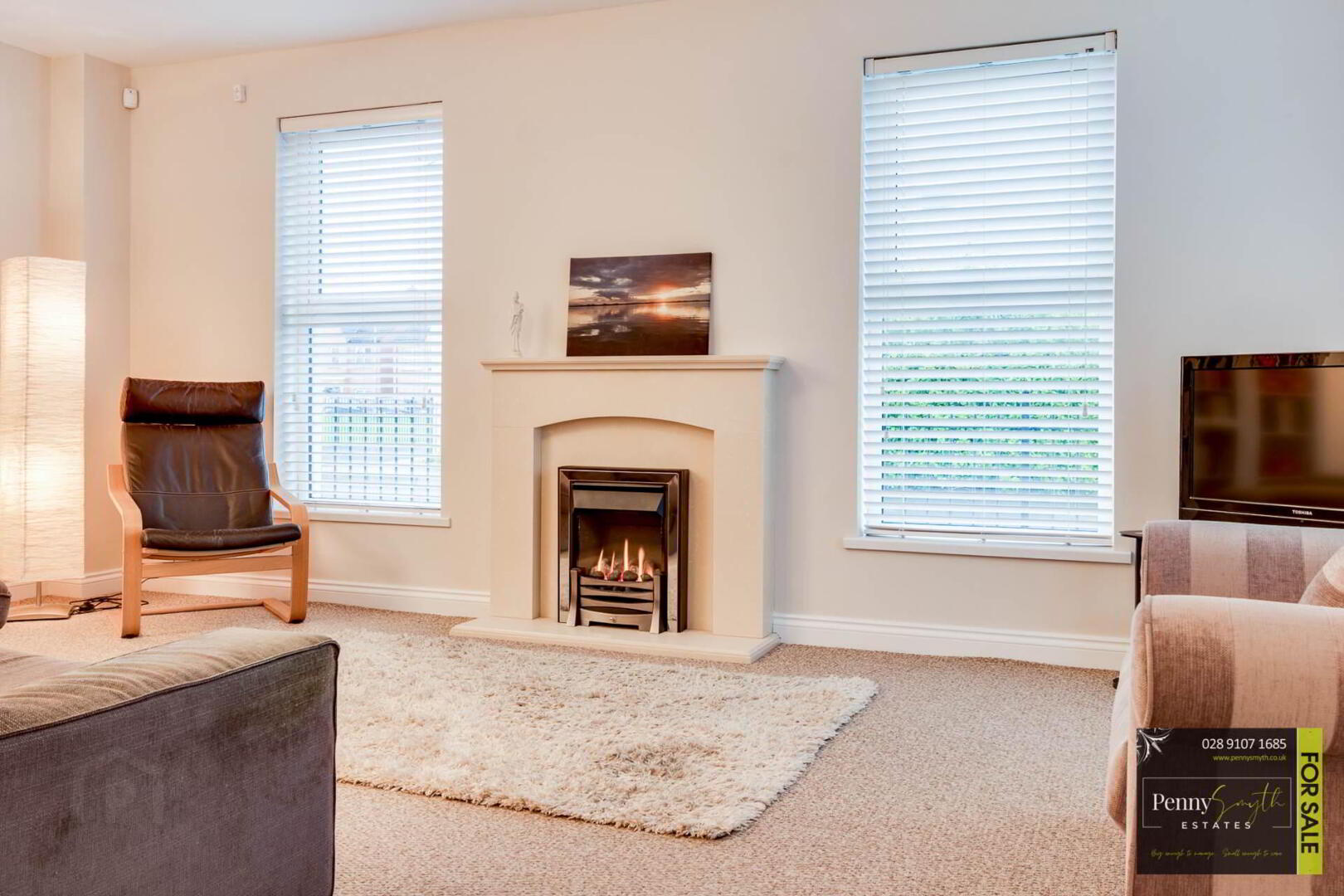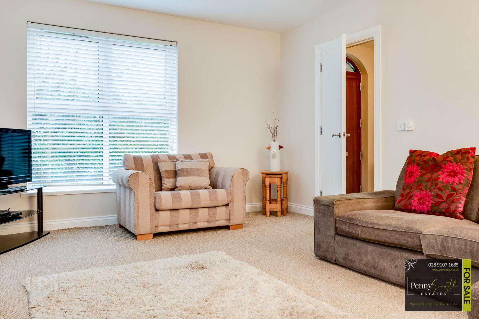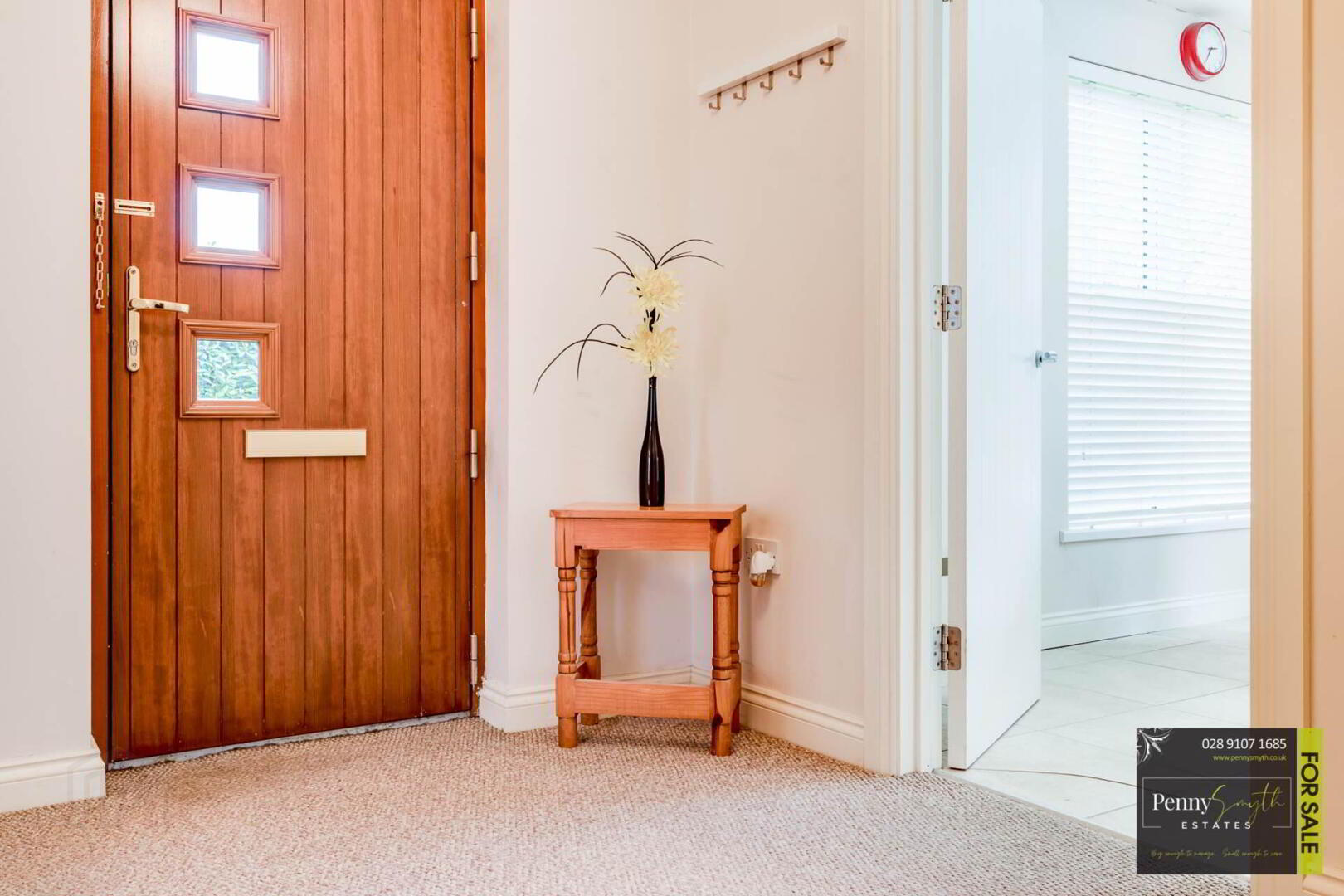 Timber external door with integrated mailbox & tip window. Double radiator with thermostatic valve & carpeted flooring.