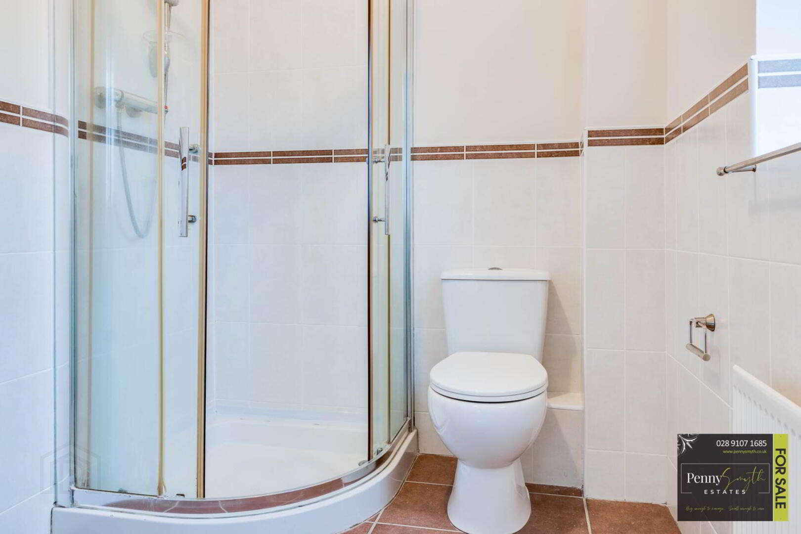 White suite comprising fully tiled corner enclosure with thermostatic mixer shower. Semi pedestal wash hand basin & close couple w.c. uPVC double glazed privacy window, extractor fan, walls part tiled, single radiator with thermostatic valve & ceramic tile flooring.