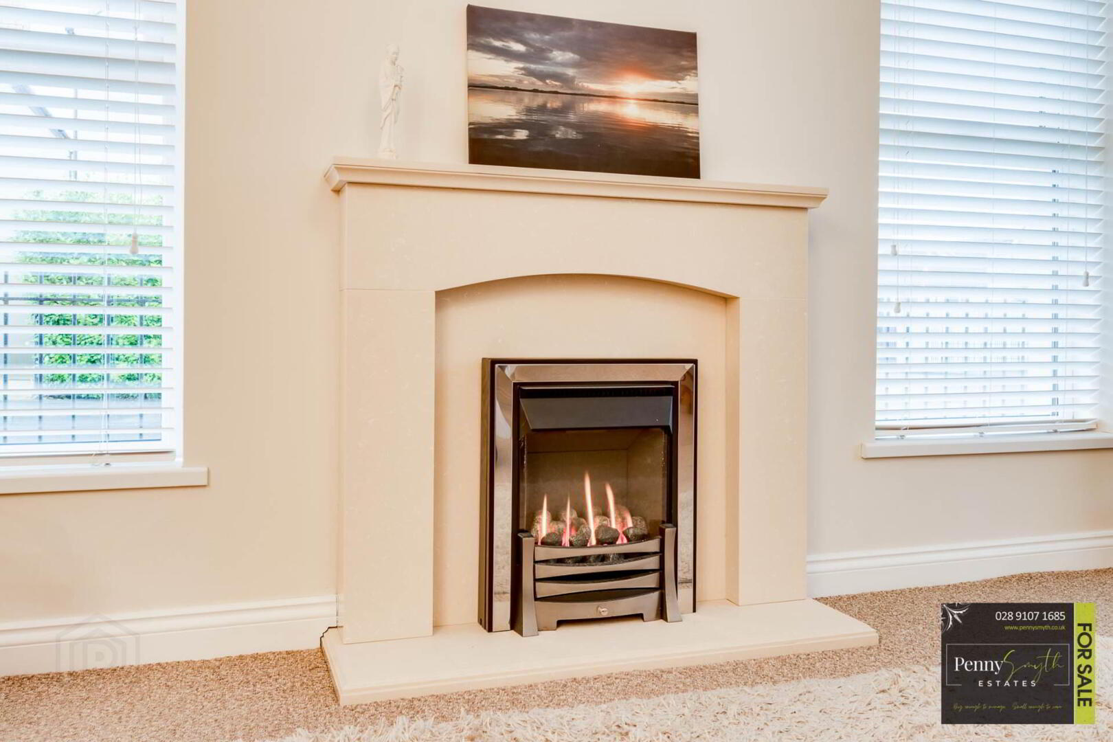 Feature glass front gas fire. uPVC double glazed windows, mounted room thermostat, double radiator with thermostatic valve & carpeted flooring.