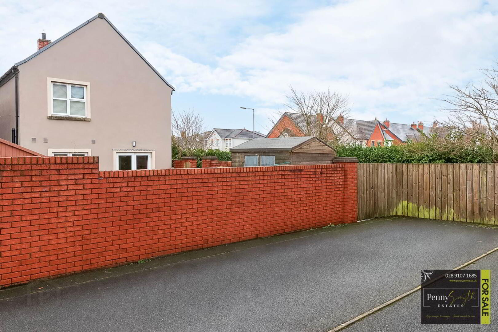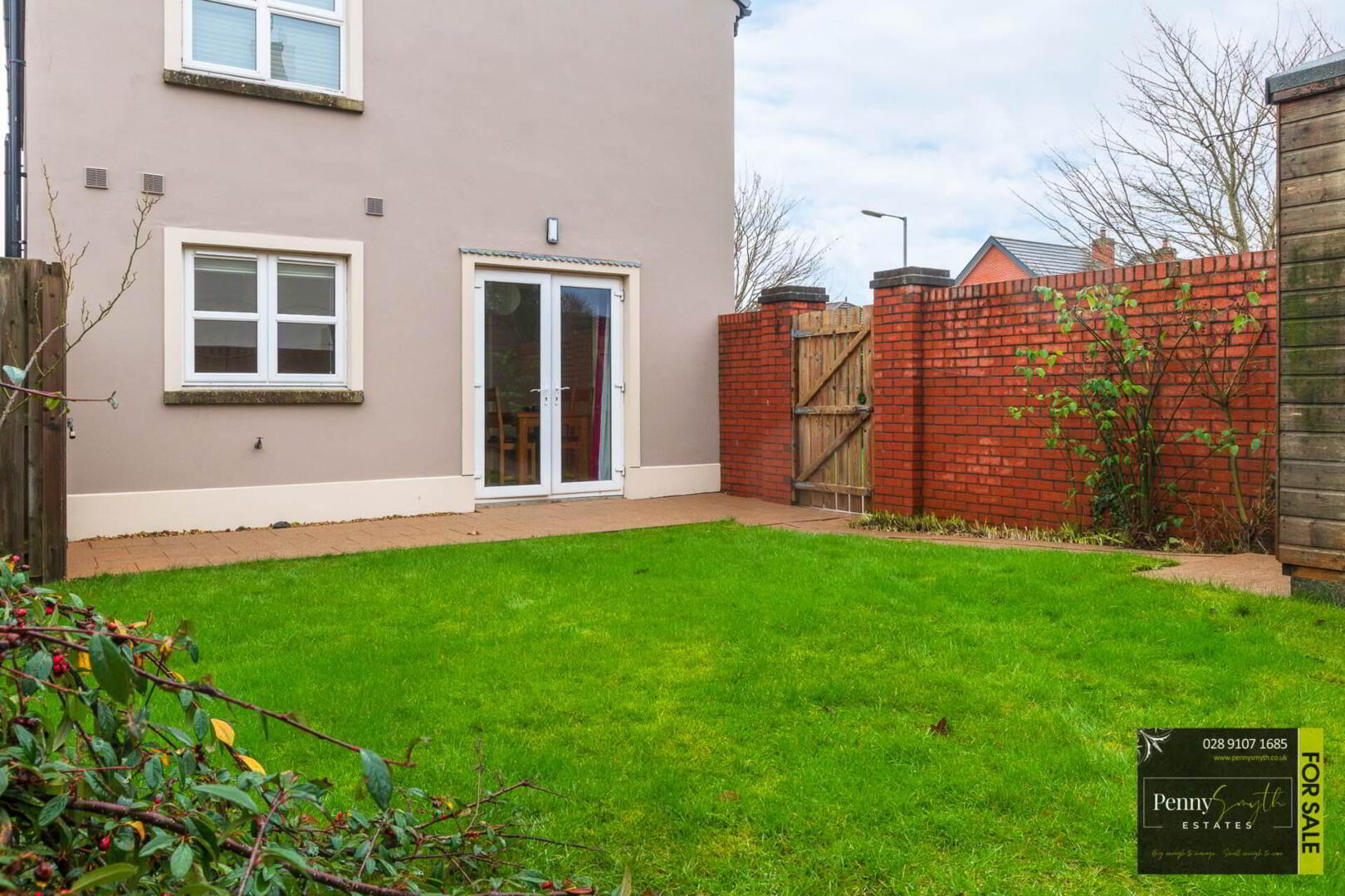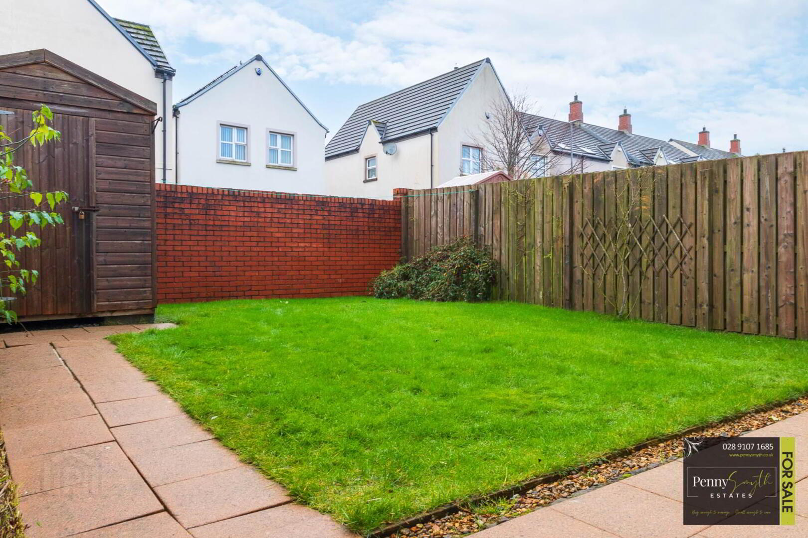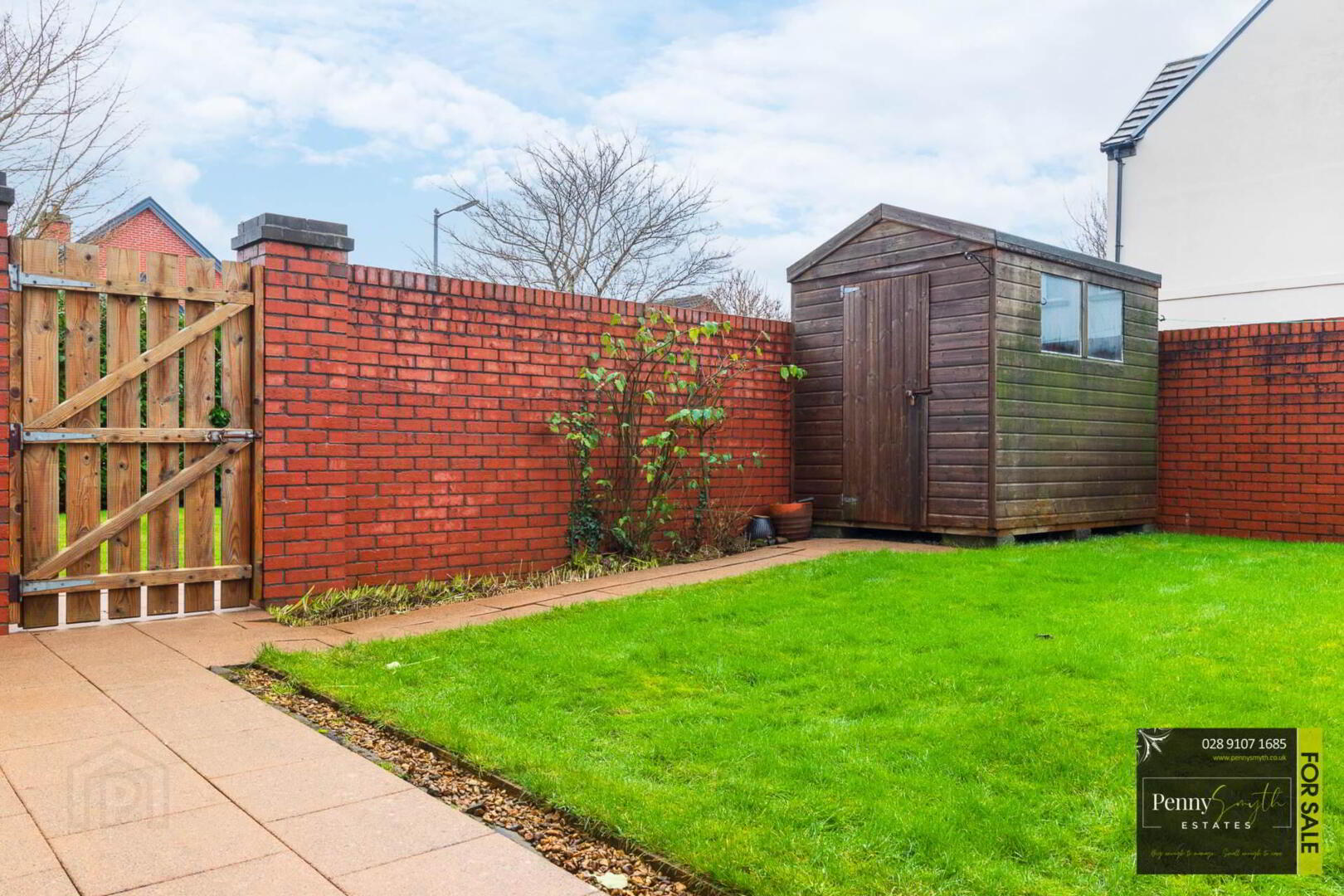 Enclosed by attractive brick wall & fencing with gated access. Garden laid in lawn with paved path & gravel border. Outside lighting & water tap. Driveway ample for two car spaces.