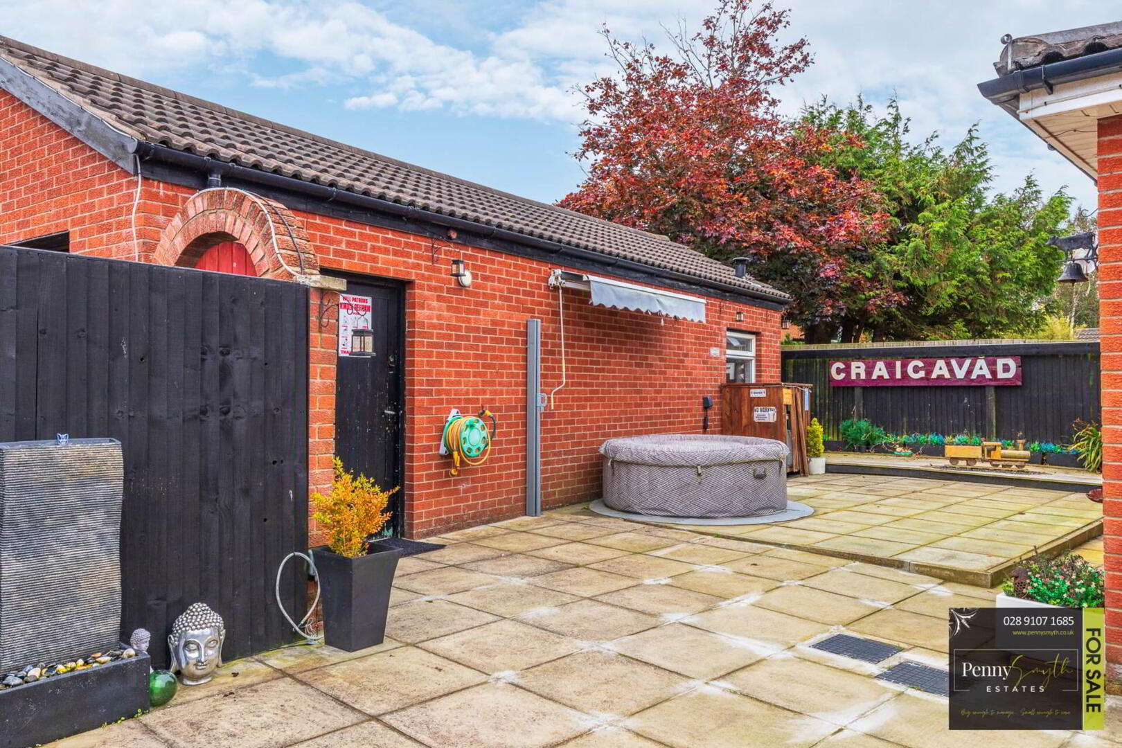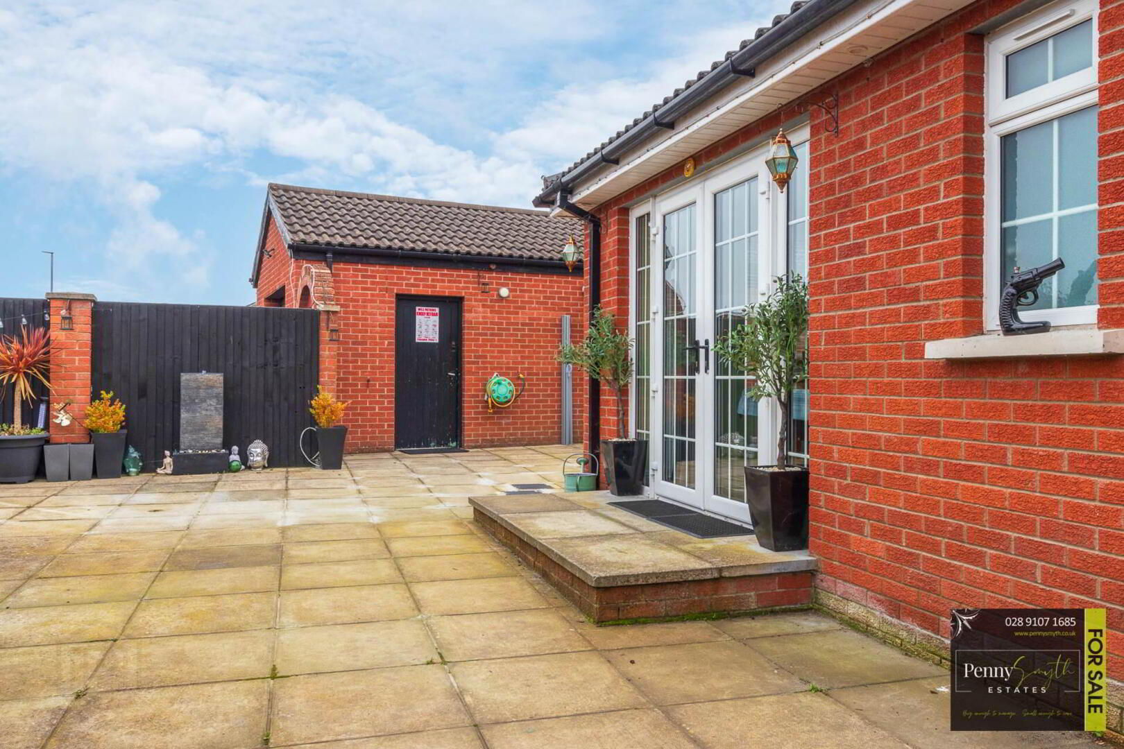 This property benefits from uPVC double glazing throughout, oil fired central heating, off road parking & a detached garage with built in sauna & utility room. On a generous corner site, the front garden has been well manicured laid in lawn, with a paved enclosed rear.