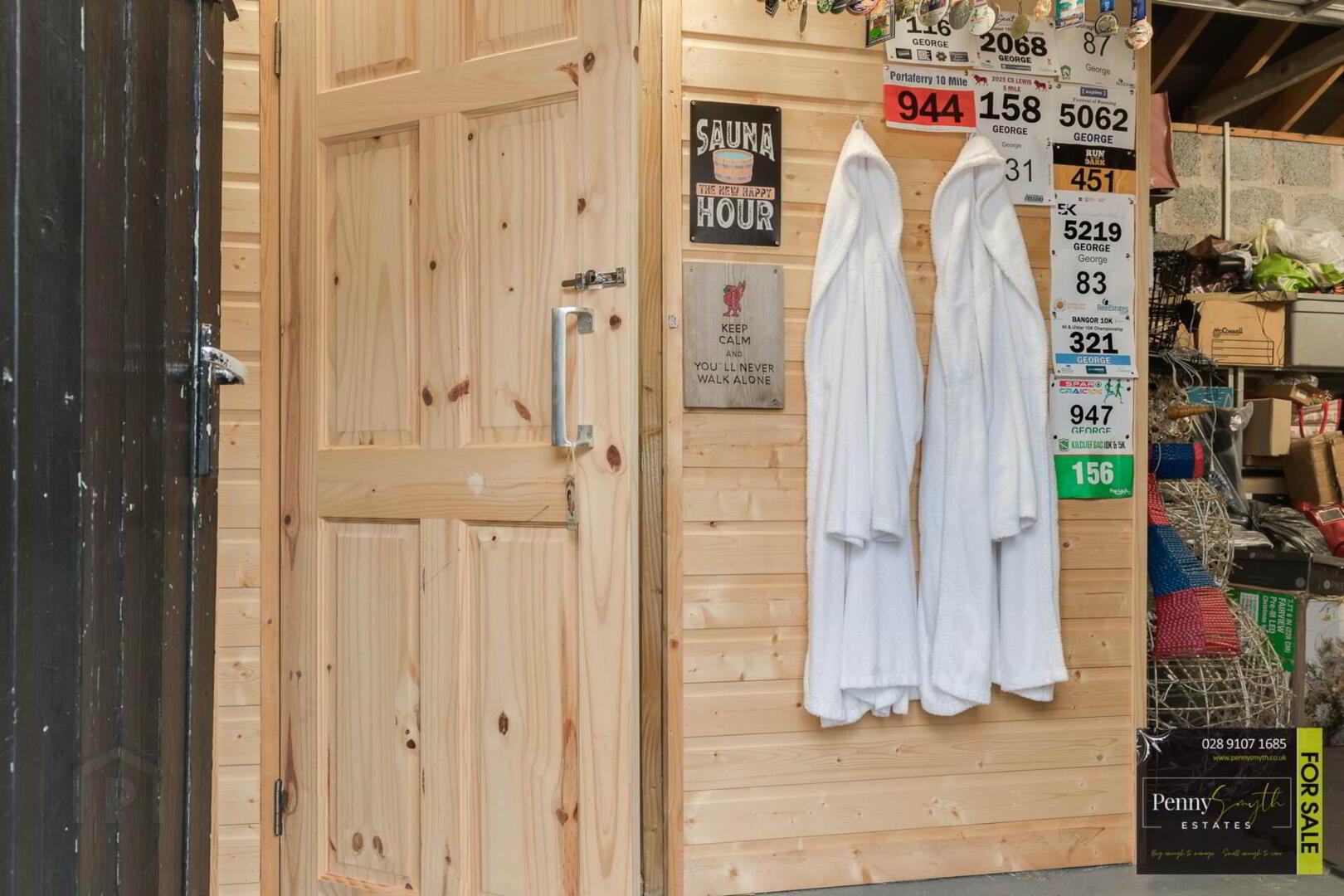 Built in Sauna. Roller door & timber external side door. Separate utility area with 1½ bowl sink unit with mixer tap & tiled splash back. Plumbed for washing machine, oil fired boiler, uPVC double glazed window & tiled flooring.