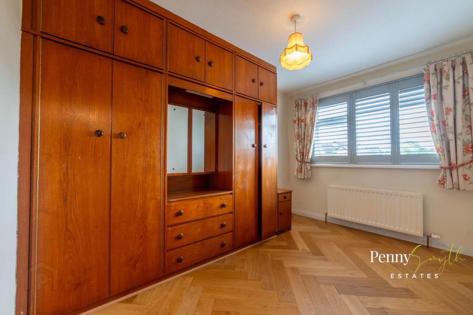Built in wardrobes with hanging, shelving & drawer units, uPVC double glazed window double radiator with thermostatic valve & solid wood parquet flooring.