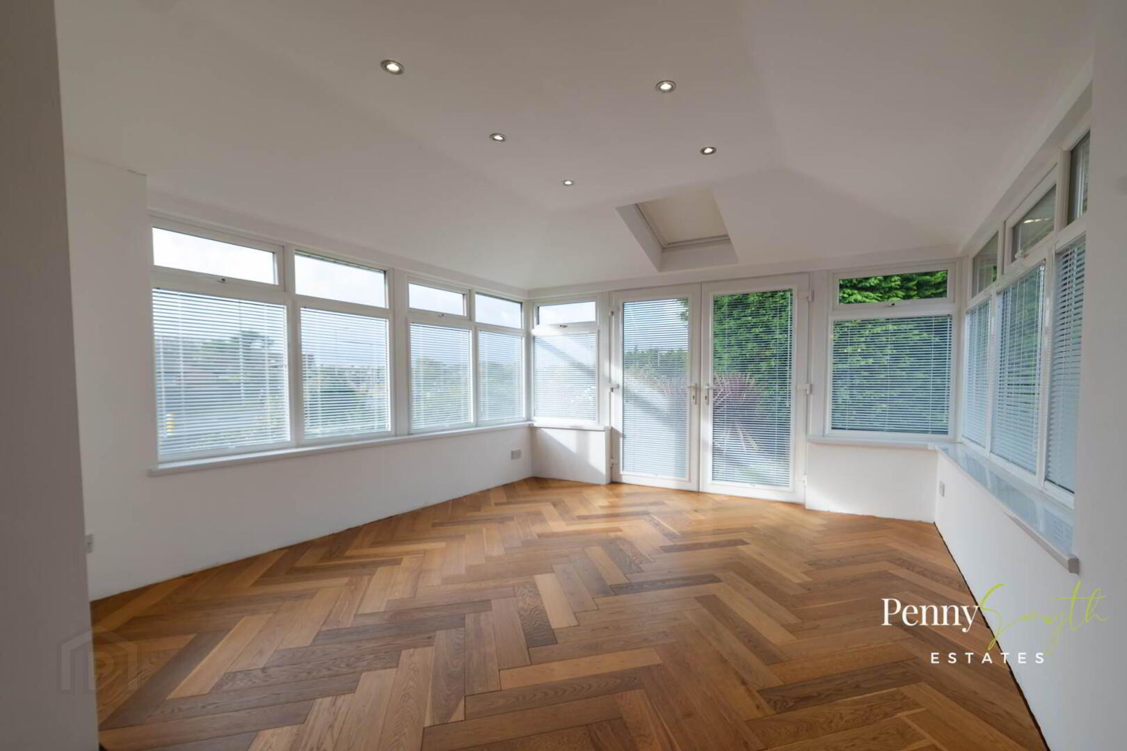 uPVC double glazed French doors & windows, double glazed roof window, recessed lighting, under floor heating & solid wood parquet flooring.
