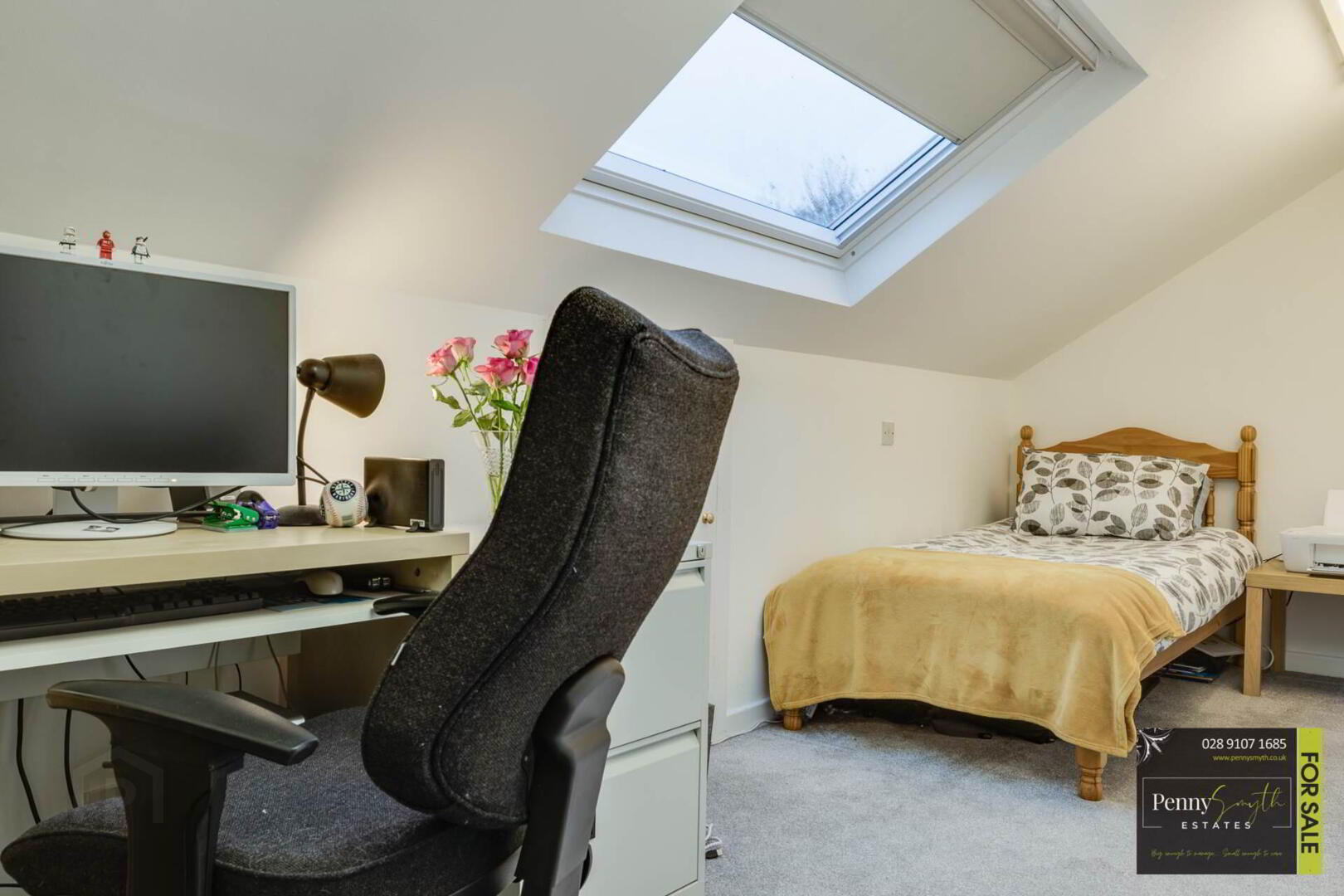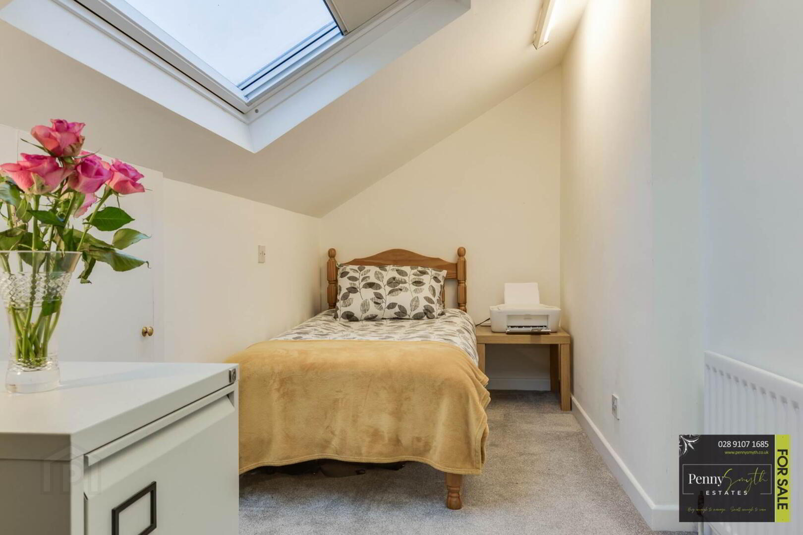 Recently fitted composite Velux window, single radiator with thermostatic valve & carpeted flooring.