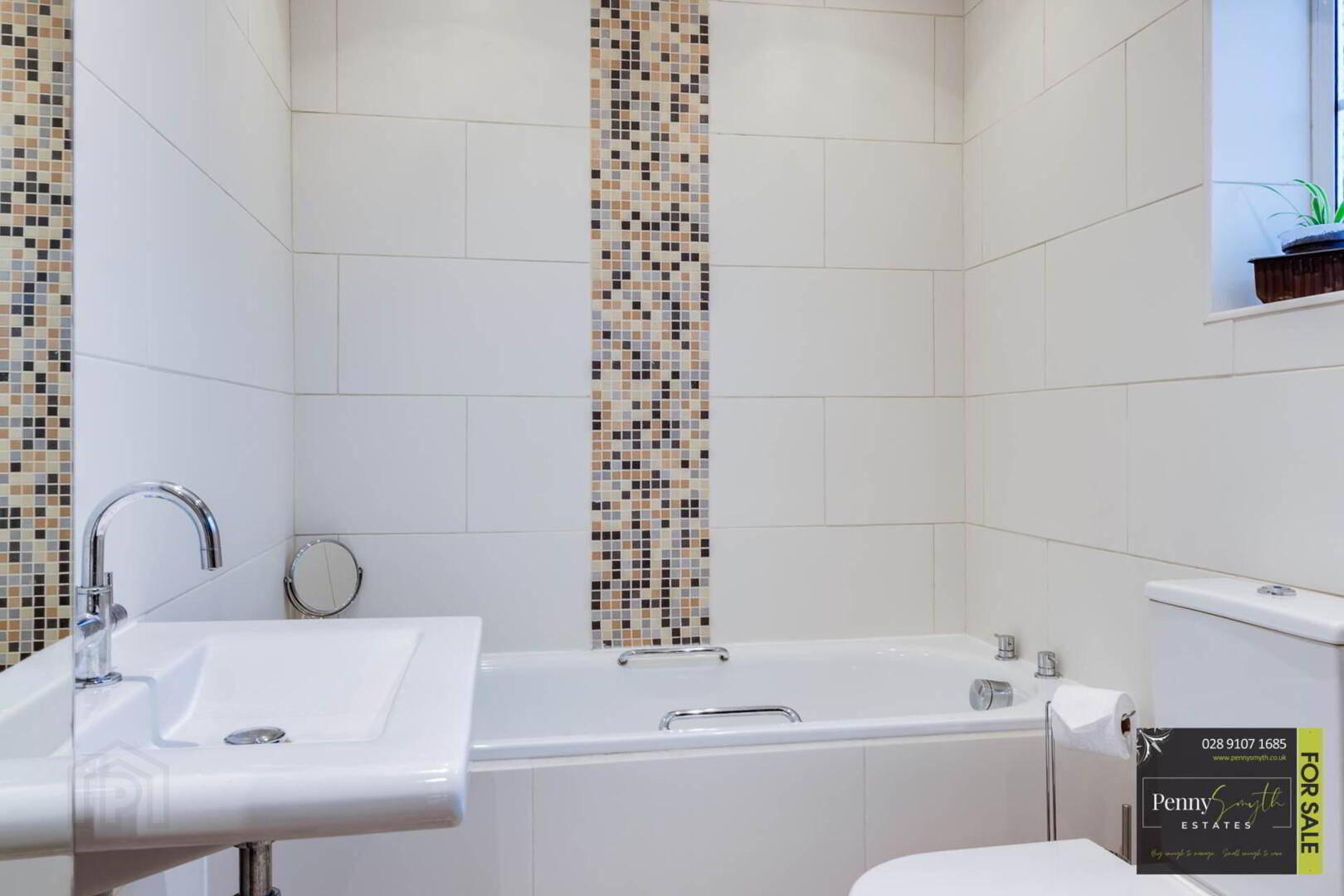 Tarmac driveway with ample parking for multiple vehicles. PVC fascia, soffit & guttering. Outside lighting. Beautiful garden laid in lawn bordered with hedging & mature shrubs.