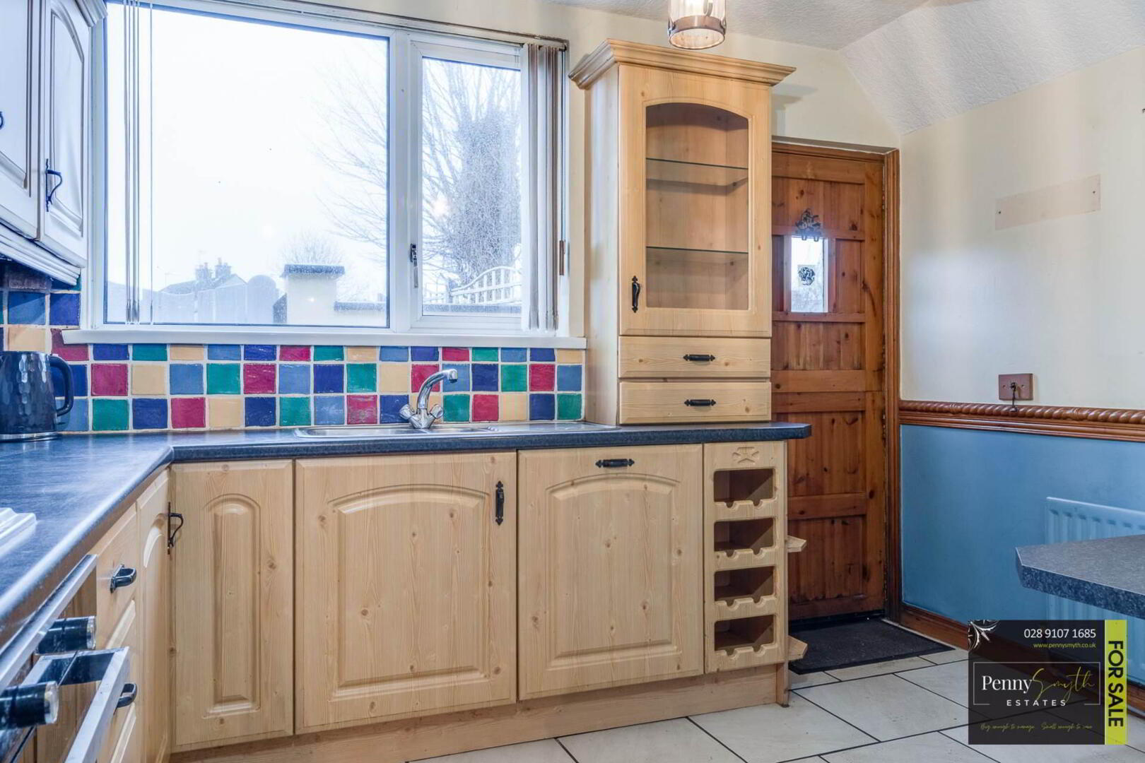 The property benefits from uPVC double glazing throughout & oil fired central heating. There is a well maintained garden to the rear & an attached garage.