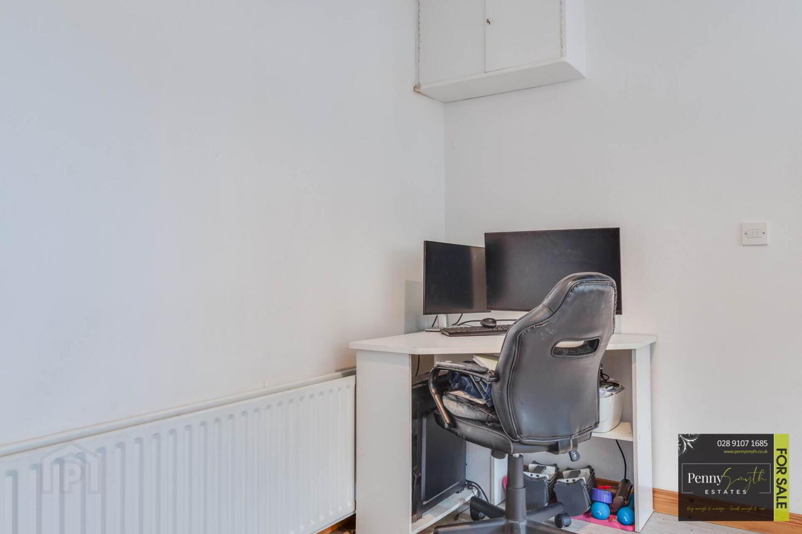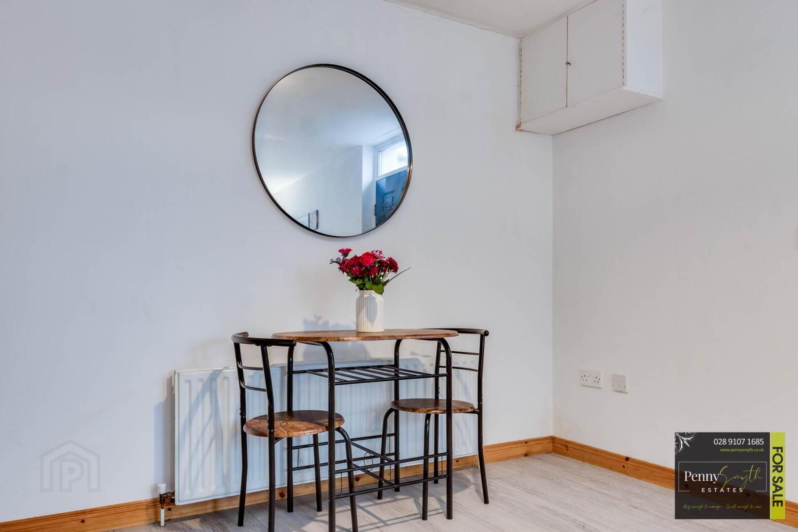 Cupboard housing electrical consumer unit. uPVC double glazed windows, double radiator with thermostatic valve & laminate wood flooring.