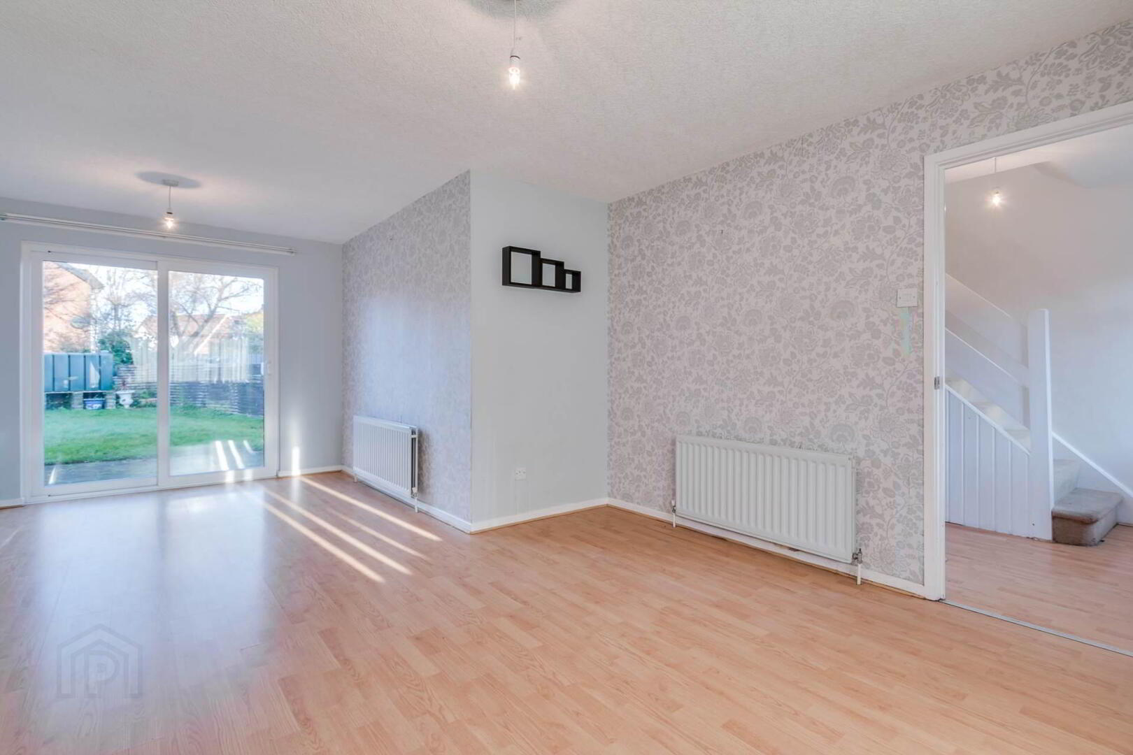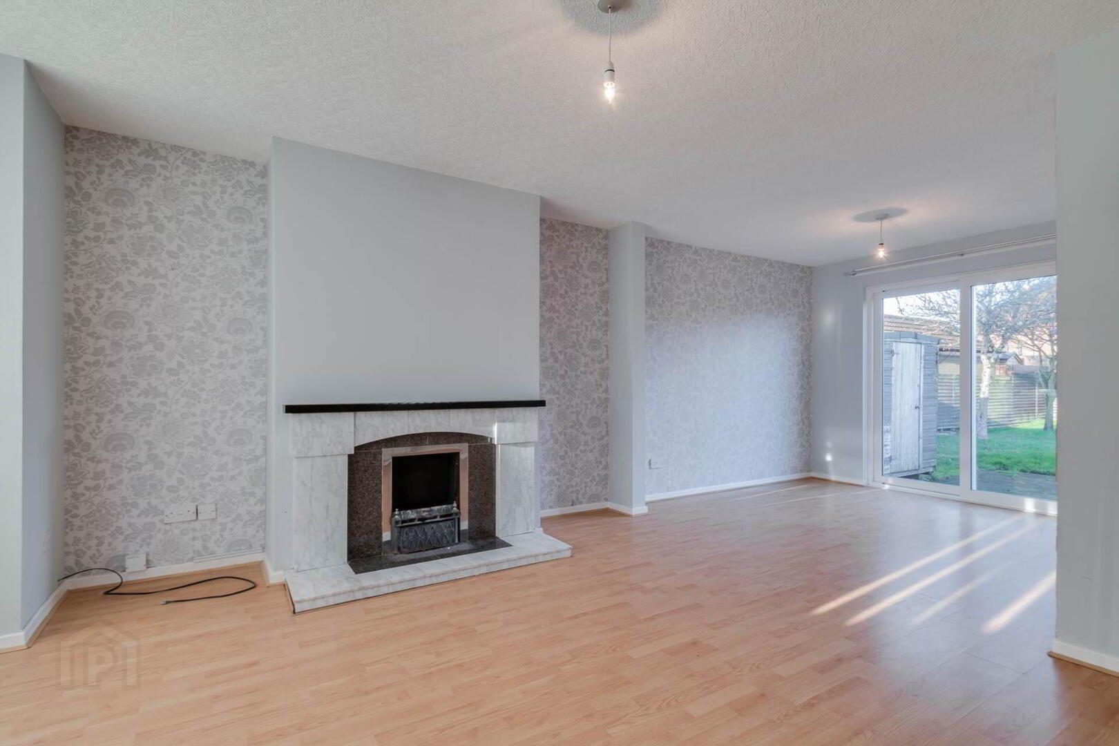 Feature fireplace with open fire in grate & marble effect mantelpiece, surround & hearth. uPVC double glazed bay window, uPVC double glazed sliding doors opening to rear garden, double radiators & laminate wood flooring.