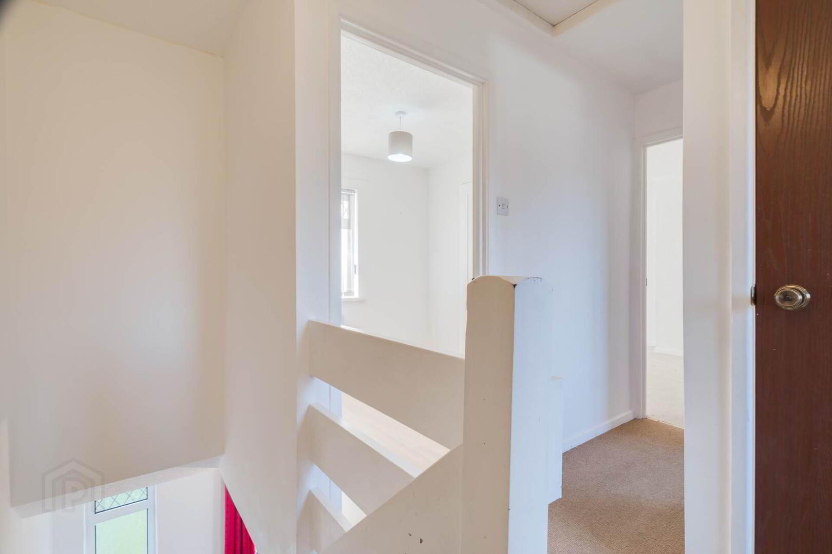 Carpeted stairs & landing with wooden banister. Hot press housing lagged copper hot water cylinder & airing shelves. Access to roof space.