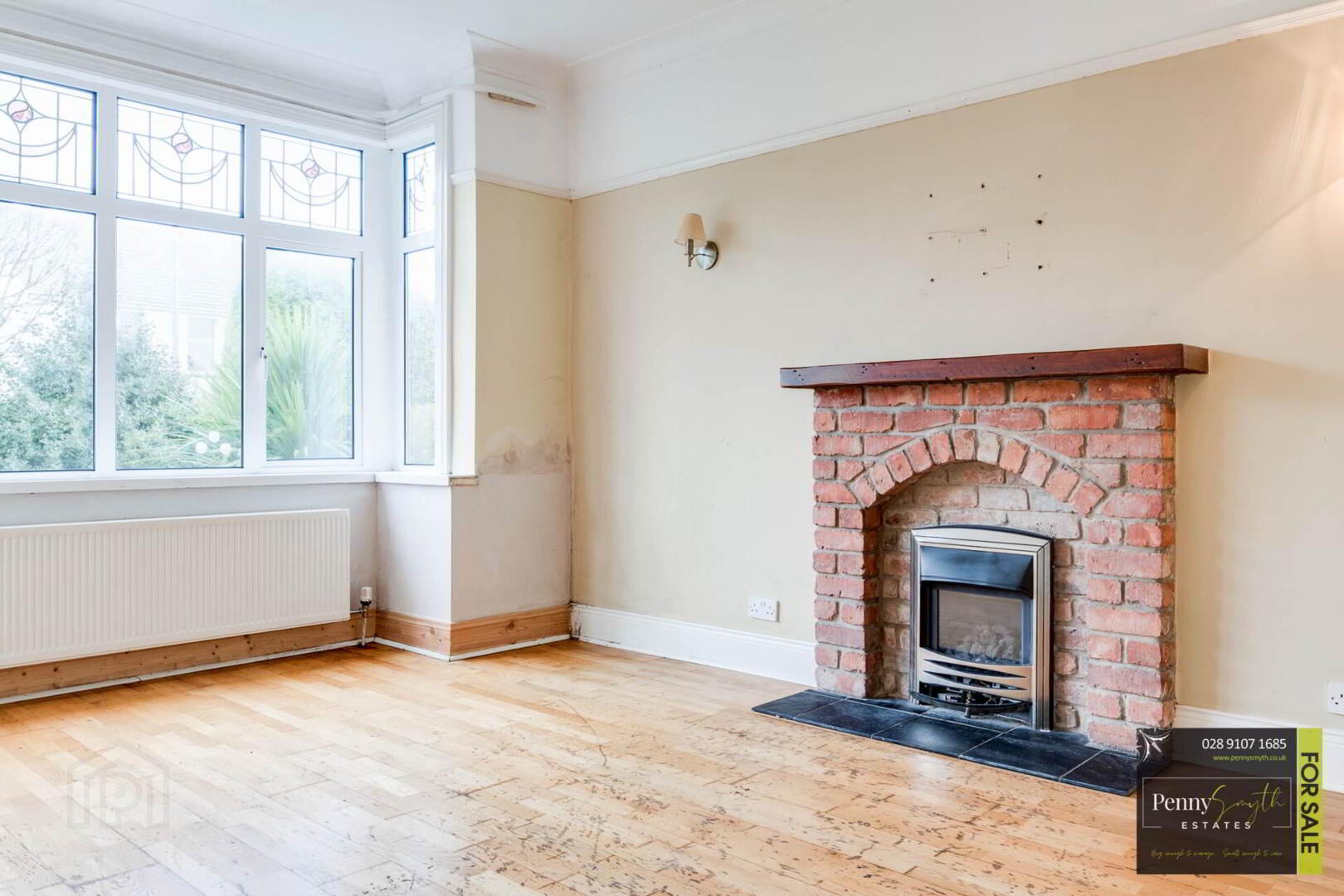 Feature fireplace with gas fire insert, red brick surround, wooden mantlepiece & tiled hearth. uPVC double glazed Bay window, double radiator & solid wood flooring.