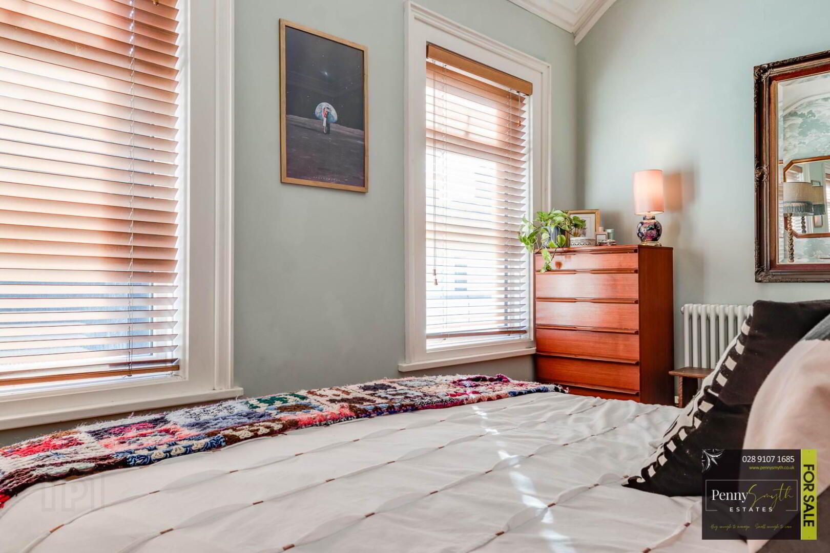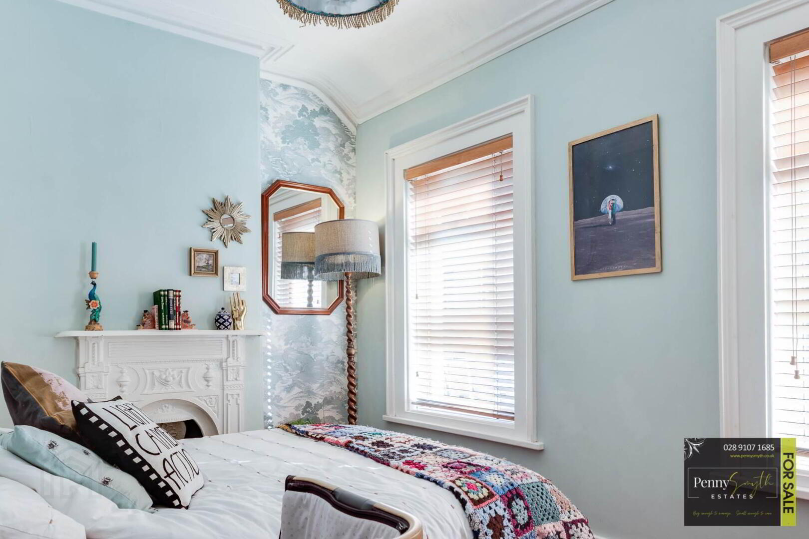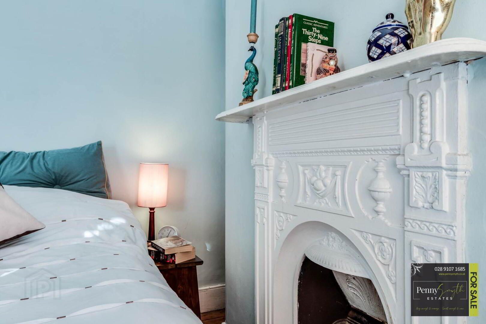 The first floor reveals two bedrooms, master bedroom featuring original cast iron fire place & a three piece white bathroom suite.