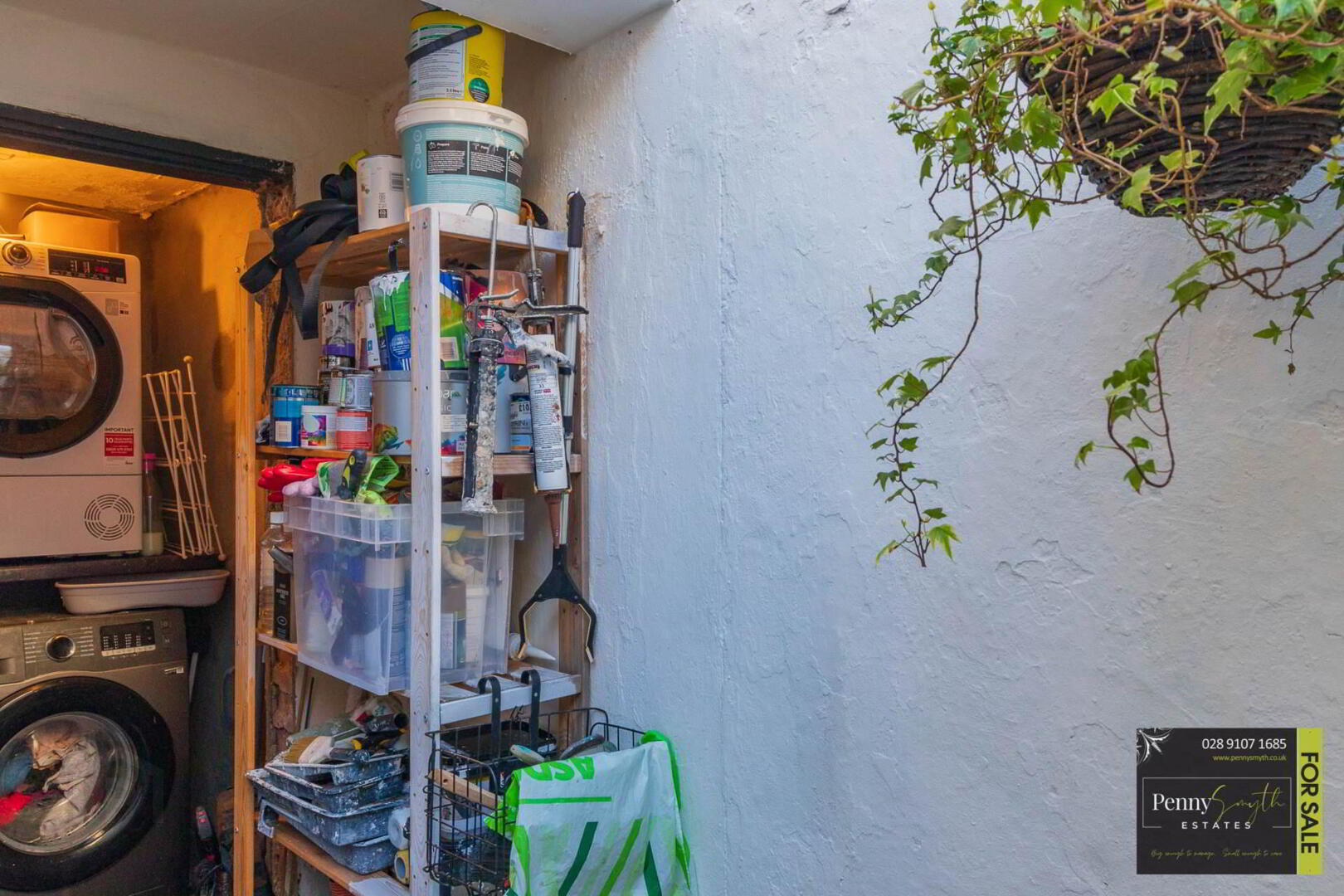 Plumbed for washing machine. Power & light.