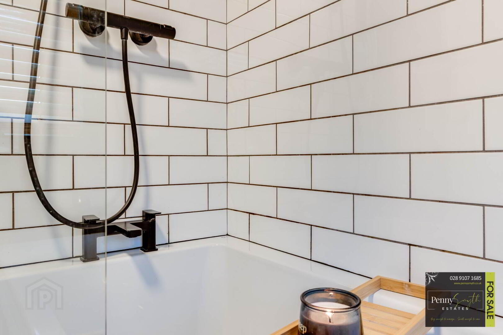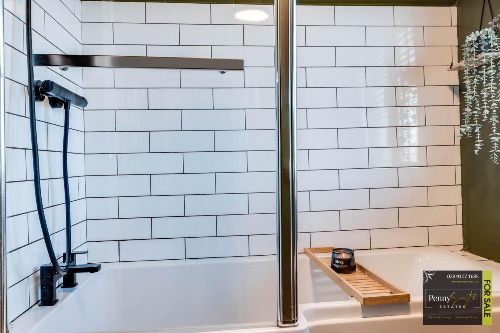 Recently fitted new White suite comprising shower bath with thermostatic mixer shower over. Vanity sink unit with mixer tap & close couple w.c. uPVC double glazed frosted window, vertical heated towel radiator & laminate flooring.