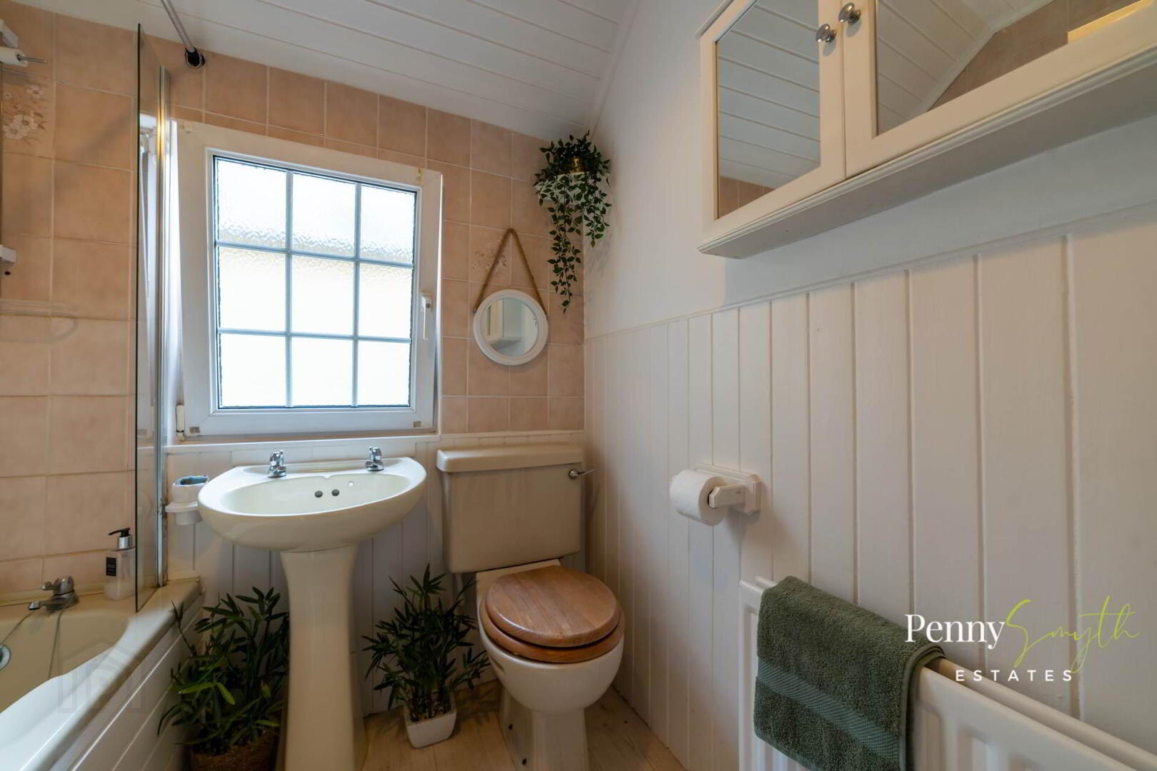 Comprising wall mounted wash hand basin with pillar taps & low flush w.c. Housing Worcester gas boiler. uPVC double glazed frosted window & ceramic tiled flooring.