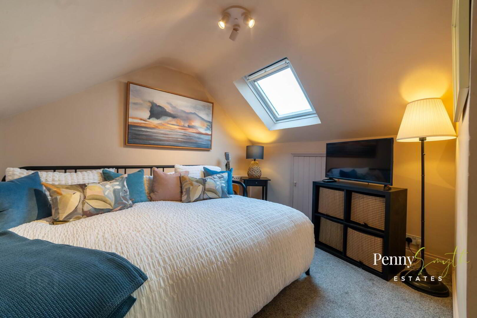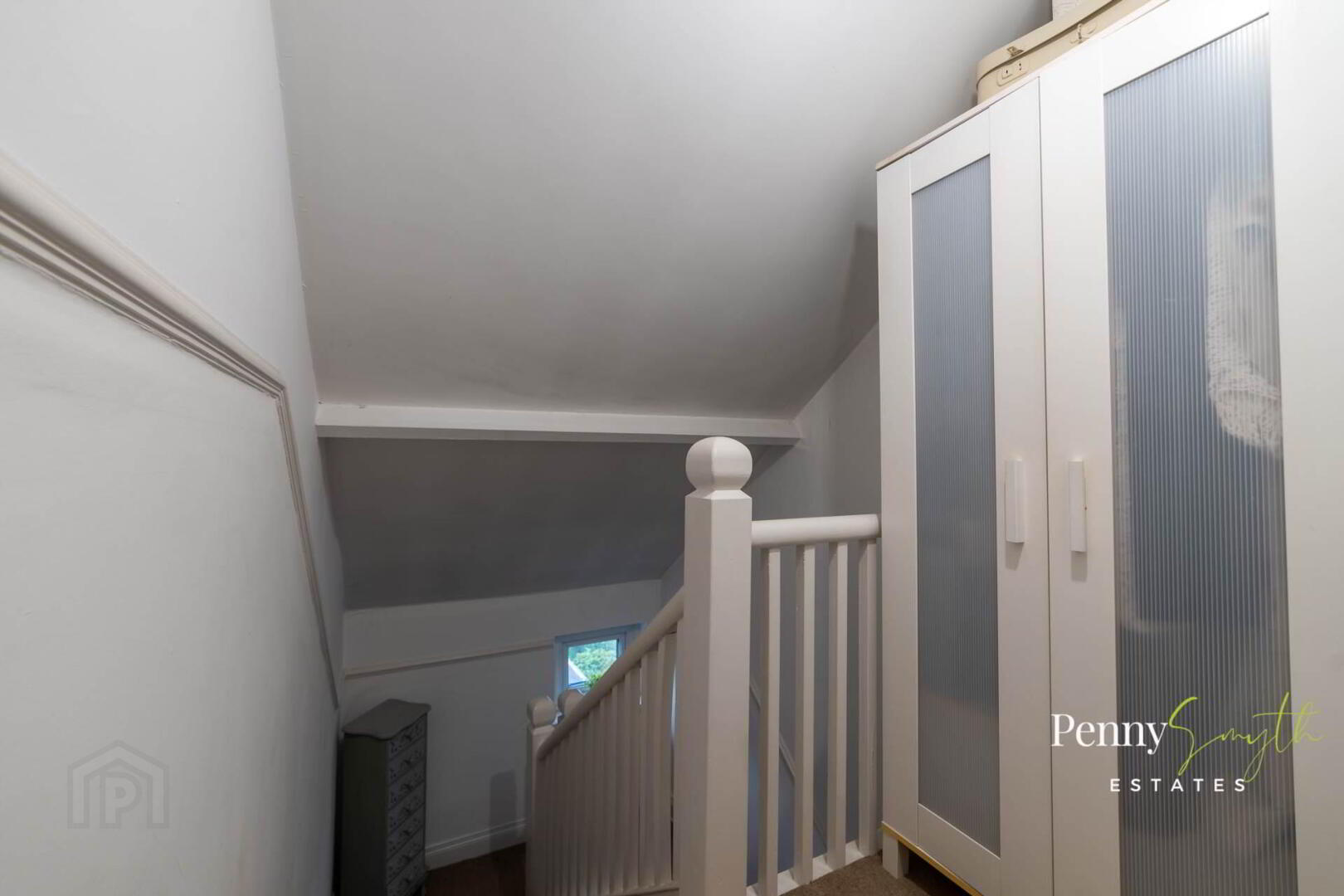 Storage into eaves, timber frame double glazed Velux window, single radiator with thermostatic valve & carpeted flooring.