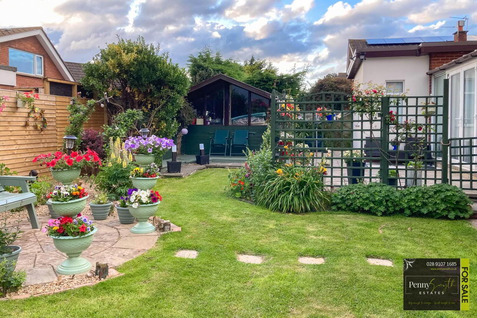 The property further benefits from uPVC double glazing throughout, oil-fired central heating and a generous driveway. Externally, there are attractive, well-tended gardens to the front & rear with mature shrubs & flower beds, along with a paved patio area & an outdoor garden room, which could also be used as a workshop.