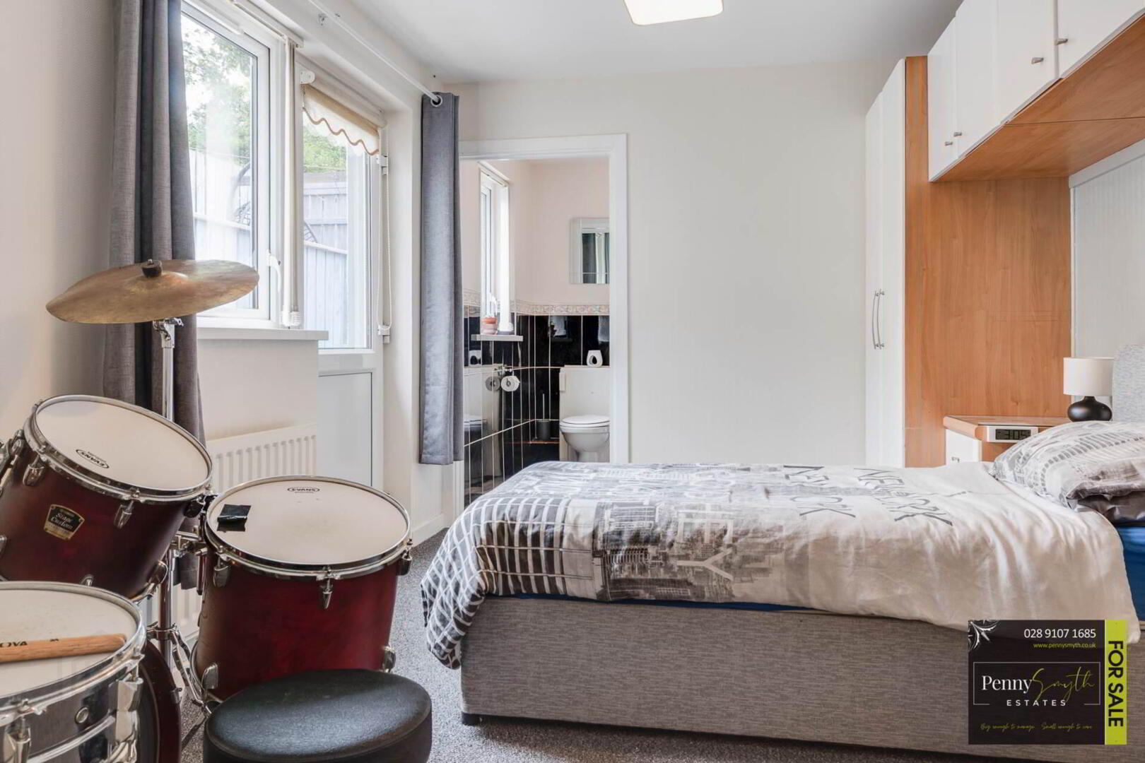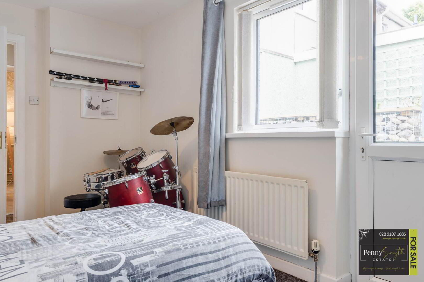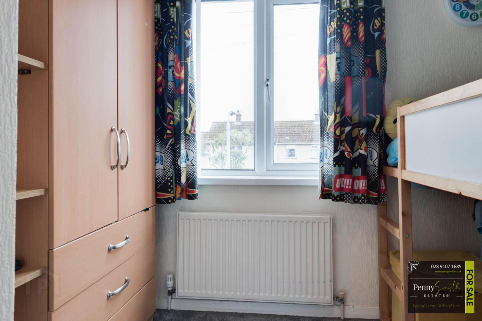 Built in furniture comprising wardrobes, bedside cabinets & overhead cabinets. uPVC external rear door with double glazed insert. uPVC double glazed window, single radiator with thermostatic valve & carpeted flooring.