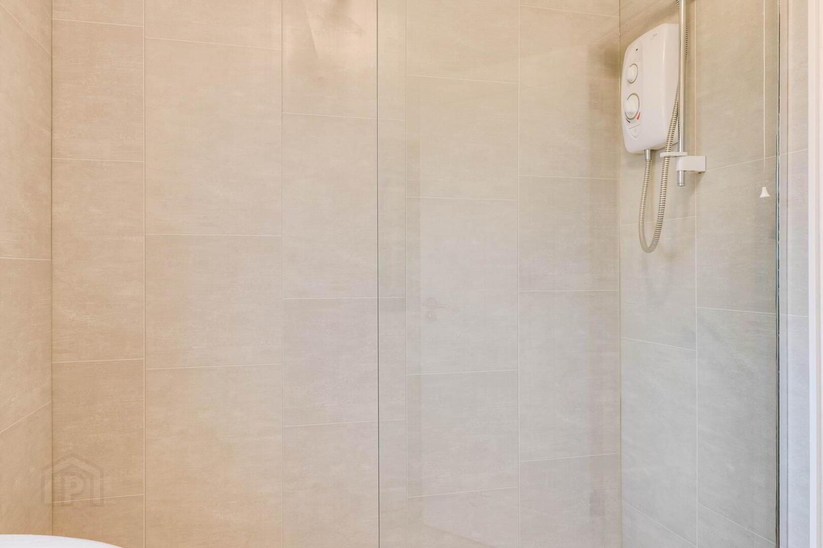 uPVC external front door & uPVC double glazed side frosted window. Double radiator & laminate wood flooring. Electrical consumer unit & electricity meter.