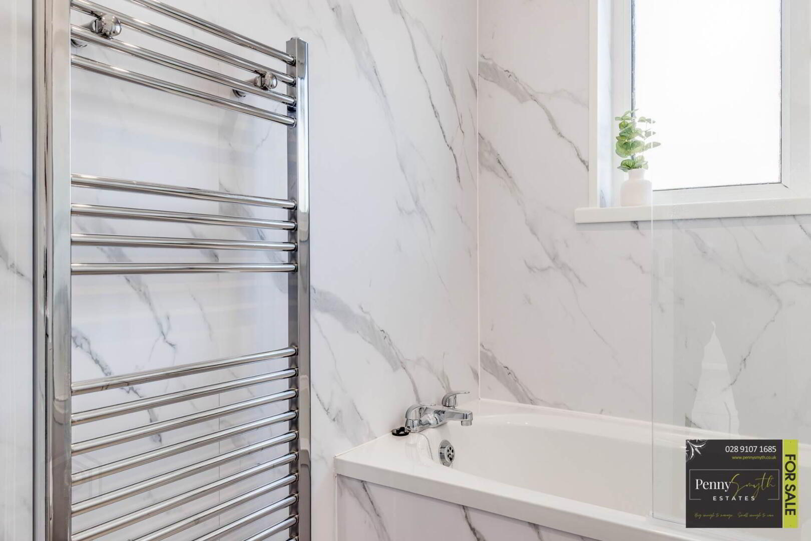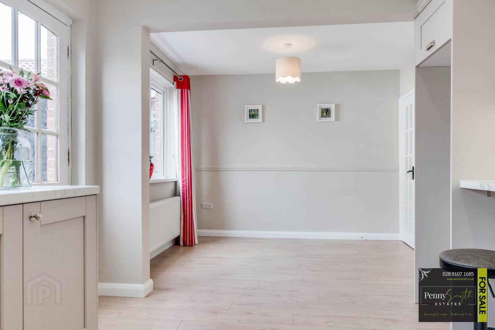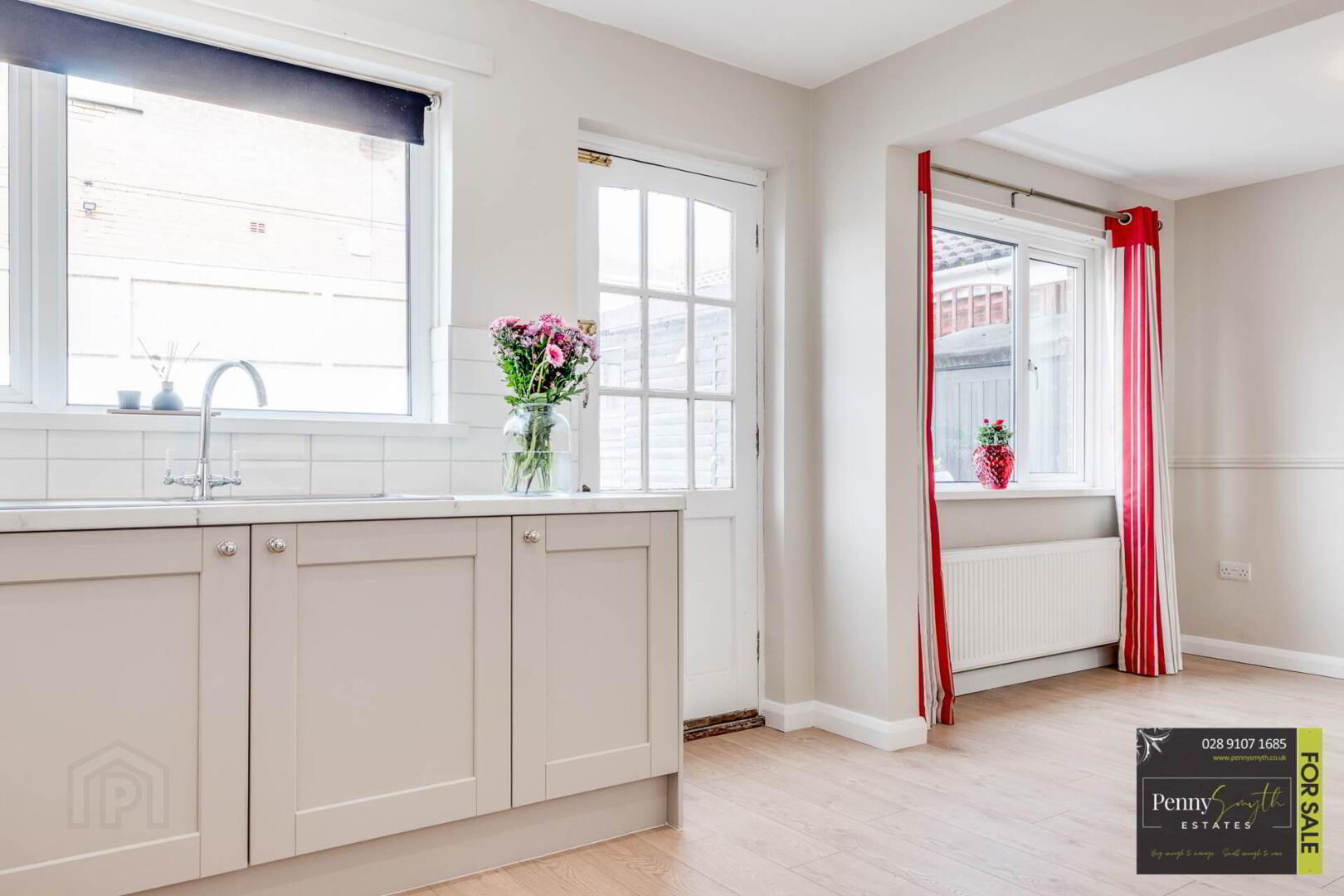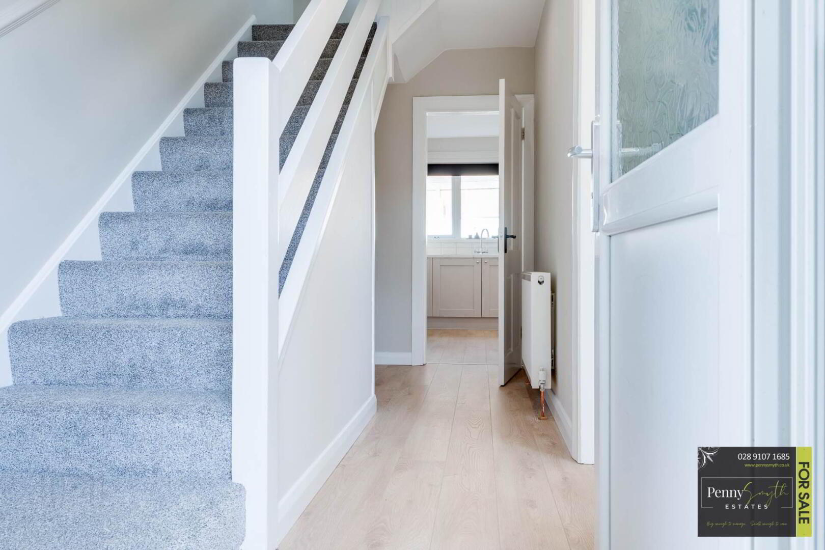 uPVC double glazed external door & side panel with integrated letter box, double radiator with thermostatic valve & laminate wood flooring.